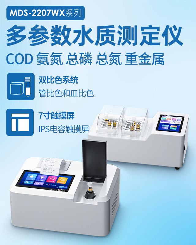 COD水質(zhì)測定儀是基于快速消解分光光度法設(shè)計(jì)制造的。COD水質(zhì)測定儀的檢測量程為0-15000mg/L(分段),檢測下限為0.7mg/L。